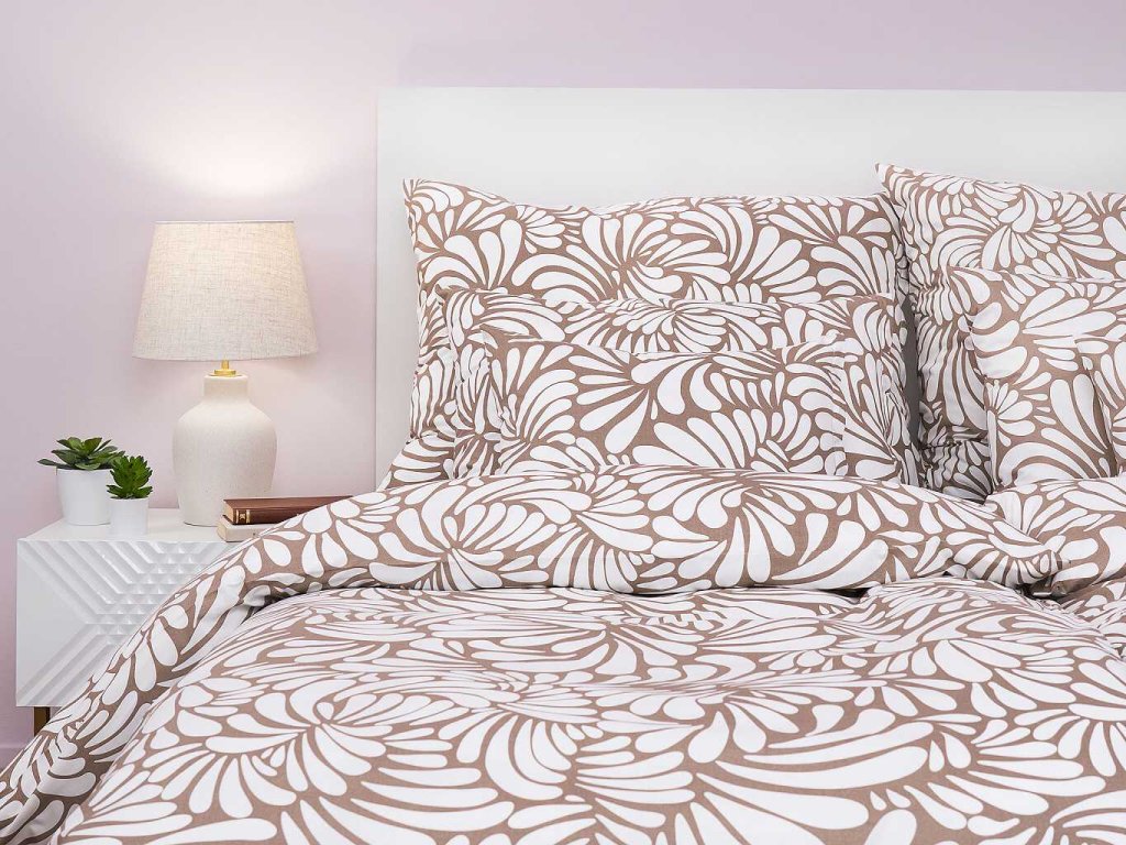 Moderní ložní prádlo Iluze opál vyniká světle hnědým (opálovým) základem s bílým abstraktním vzorem připomínajícím květinové či listové motivy. Skvěle se hodí do moderních interiérů. Vyrobeno v České republice firmou DADKA VRACOV. Doporučujeme kombinovat s prostěradlem v barvě opál nebo bílé.