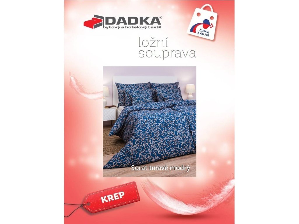 Elegantní krepové povlečení Sorat tmavě modrý s decentním vzorem v tmavě modré barvě je ideální volbou pro každého, kdo ocení pohodlí bez nutnosti žehlení. Skvěle ladí s prostěradlem v barvě medová nebo banán. Vyrobeno v České republice firmou DADKA VRACOV.