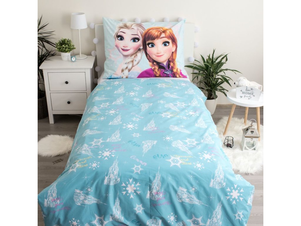 Vstupte do světa dobrodružství s povlečením Frozen Light Blue 03! Tento nádherný design přináší oblíbené postavičky Elsa a Anna na světle modrém pozadí, které rozzáří každý dětský pokoj. Na přikrývce jsou zobrazeny postavičky Elsa a Anna zády k sobě, jejich obličeje jsou také na polštáři.