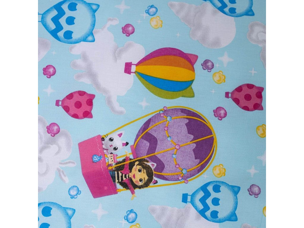Vstupte do světa dobrodružství s povlečením Gabby's Dollhouse Balloon! Tento nádherný design přináší oblíbené postavičky Gabby a její kočičí kamarády v horkovzdušném balónu na modrém nebi s obláčky, které rozzáří každý dětský pokoj. Na přikrývce jsou zobrazeny postavičky Gabby a její kočičí kamarádi v horkovzdušném balónu.