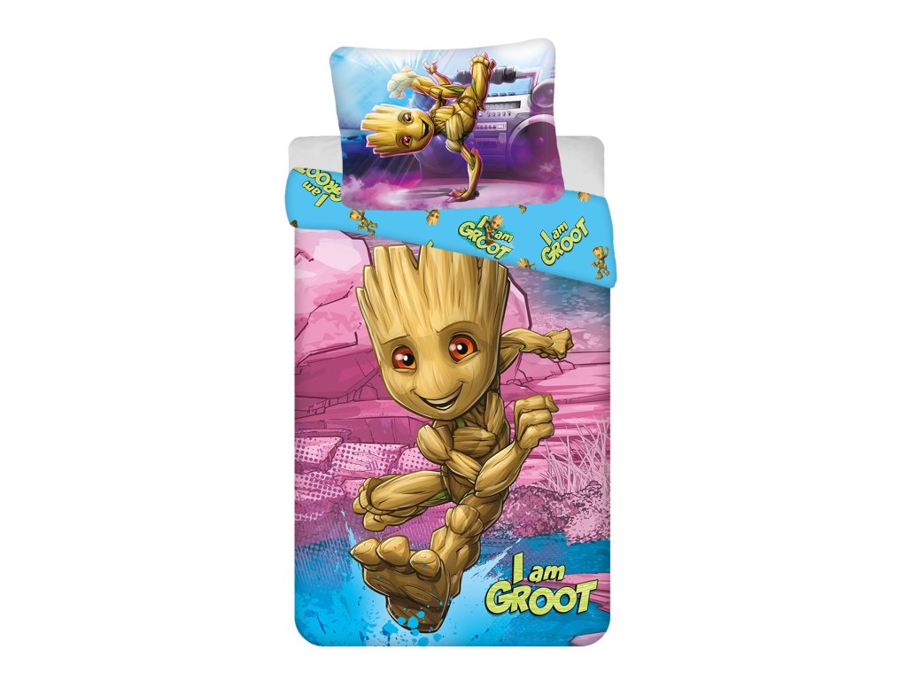 Vneste do dětského pokoje kouzlo Marvel univerza s povlečením Groot – I am Groot! Oblíbený hrdina Groot z filmu Strážci Galaxie rozzáří každý dětský pokoj. Povlečení je laděno do akčních barev a zdobí ho krásný potisk Groota v akční póze s textem 'I am Groot'. Polštář také zdobí Groot v další akční póze.