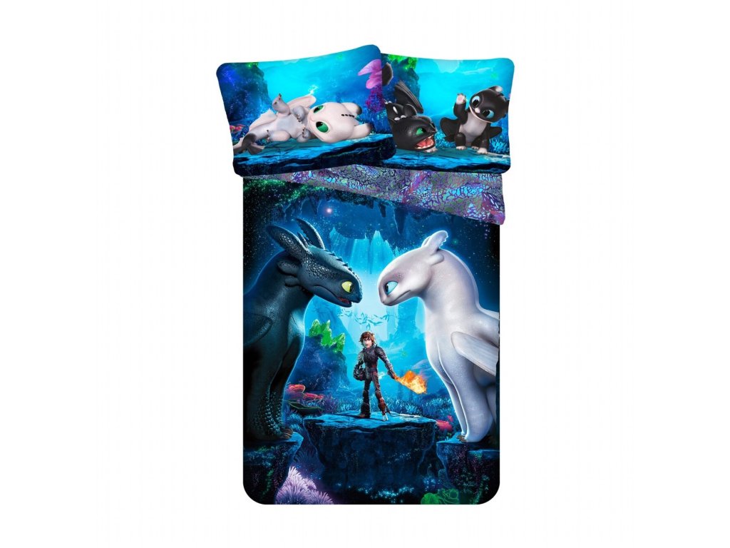 Vydejte se na dobrodružství s povlečením Jak vycvičit draka! Tento design inspirovaný populárním filmem přináší do dětského pokoje energii a akci. Povlečení zobrazuje hlavní postavy – Škyťáka, Bezzubku a Bílou Běsku – v jeskynním prostředí. Polštáře zdobí obrázky mláďat draků při hře.