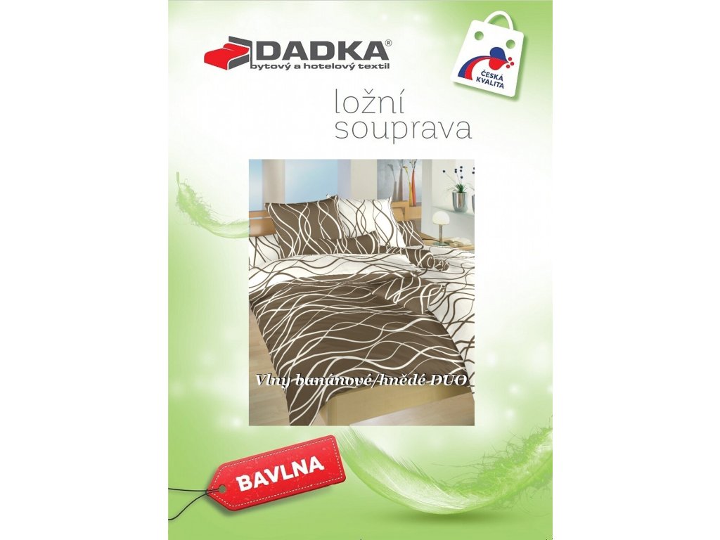 Originální ložní prádlo Vlny banánové/hnědé DUO kombinuje dva kontrastní tóny – banánový a hnědý – s jemným vlnkovým vzorem v bílé a hnědé barvě. DUO provedení dodává ložnici dynamiku a možnost variabilního stylování. Povlečení doporučujeme kombinovat s prostěradly v barvě banánová nebo tmavě hnědá. Vyrobeno v České republice firmou DADKA VRACOV.