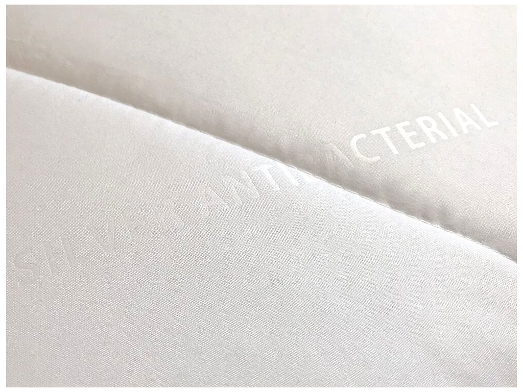 Barva: bílá s jemným nápisem silver antibacterial. Povlakový materiál: 100% Polyester microFíber s obsahem stříbra.