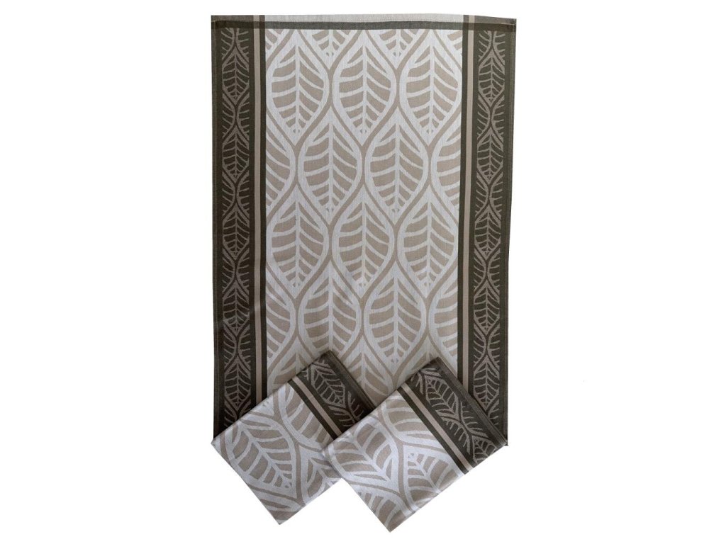 Sada tří bavlněných žakárový utěrek - extra savé. Vzor listy hnědé.
