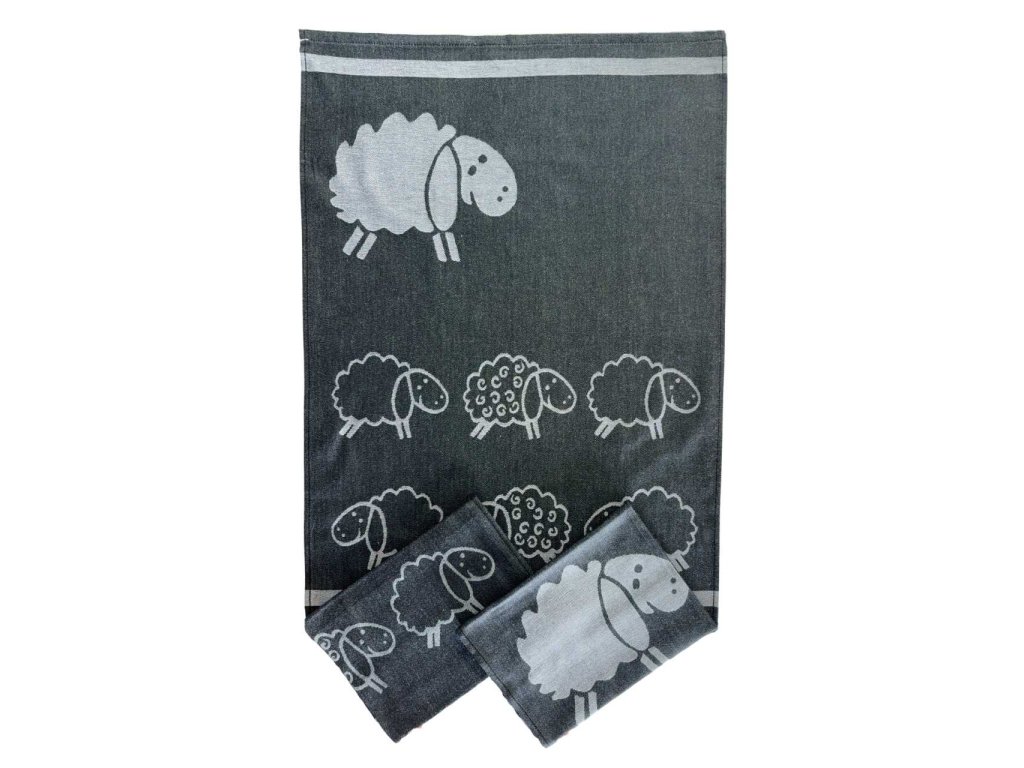 Sada tří bavlněných žakárový utěrek - extra savé se vzorem oveček. Rozměr utěrek je 3x 50x70 cm.