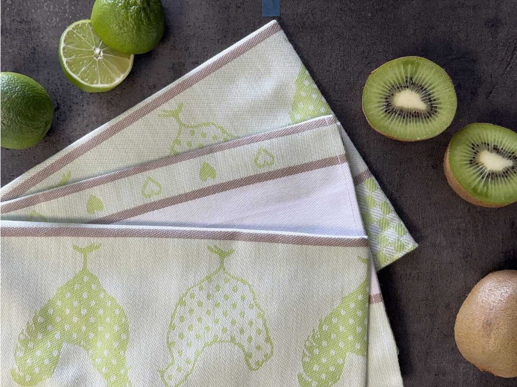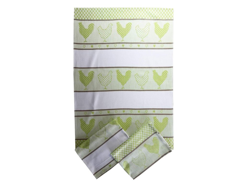 Sada tří bavlněných žakárový utěrek - extra savé. Rozměr utěrek je 3x 50x70 cm. Motiv slepiček v zelené barvě.