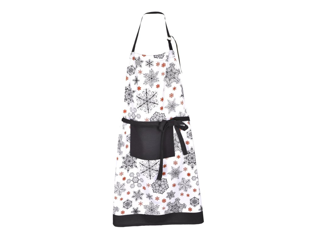 Název: Kuchyňská vánoční zástěra Černé a červené vločky 1167.